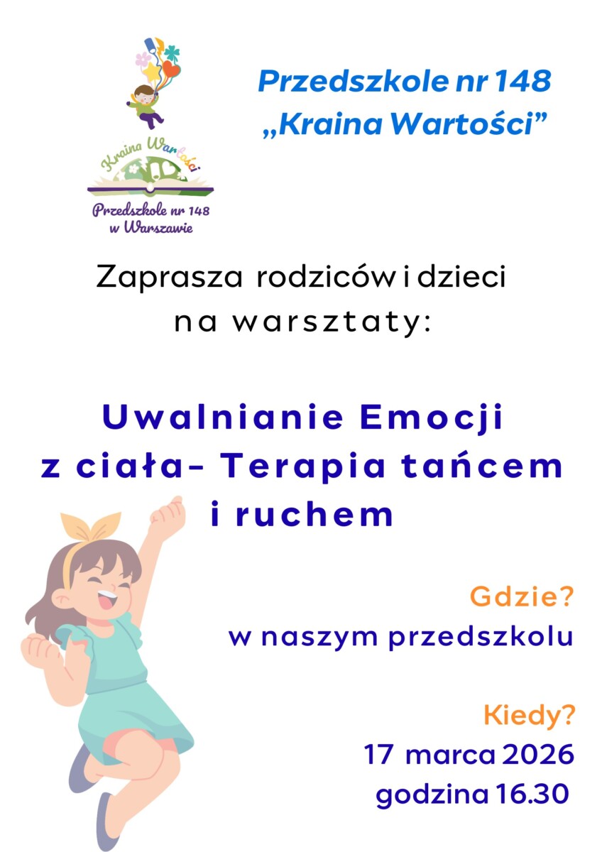 Dlatego zapraszamy dzieci i rodziców na wyjątkowe warsztaty, podczas których poprzez ruch, taniec i zabawę będziemy uczyć się rozpoznawać, wyrażać i uwalniać emocje. To bezpieczna przestrzeń, w której dzieci mogą być sobą, poruszać się swobodnie i odkrywać, że ciało potrafi opowiadać o tym, co czujemy. Podczas spotkania pokażemy, jak poprzez ruch budować spokój, pewność siebie i radość bycia razem.